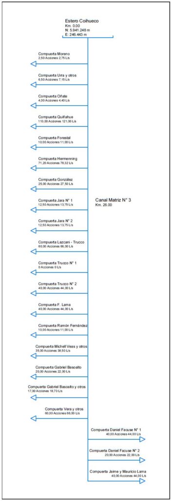 El canal Matriz N° 2 tiene una longitud de 6,8 Km aproximadamente y riega la zona 3 que está ubicada entre el río Coihueco y el estero Culenar, con una superficie de riego aproximada a 2.180 hectáreas, las que son alimentadas a través del canal Matriz N° 2 y dos entregas del río Coihueco, ubicadas aguas debajo de la bocatoma del canal Matriz N° 2.