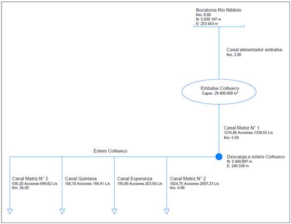 El objetivo de esta obra es trasvasijar recursos hídricos del río Niblinto al embalse Coihueco entre los meses de junio y marzo.